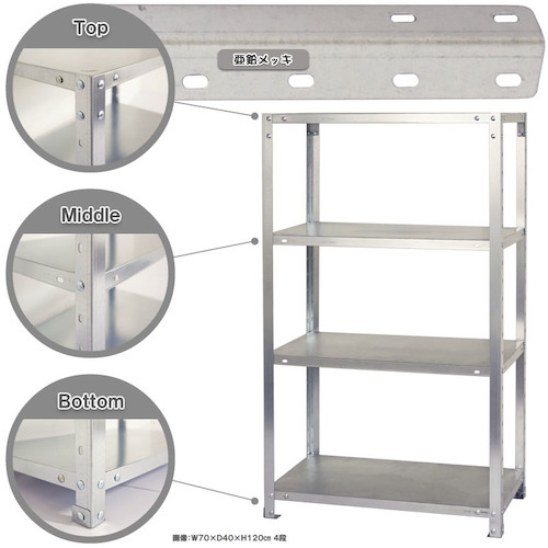 特長 | ●中段の変更が非常に簡単なスチールラックです。 |