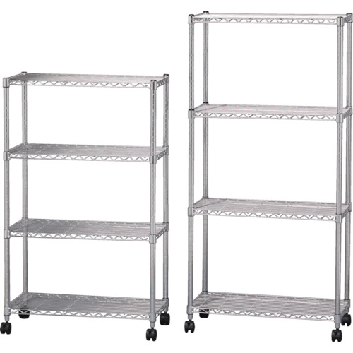 特長 | ●クロームメッキ仕上げのラックです。 ●クギやねじを使わずに簡単に組み立てることができます。 ●棚の高さは25mmピッチで変えることができます。 |