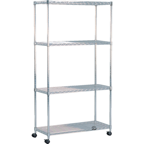 材質/仕上 | ●棚板・ポール:スチール ●表面処理:クロムメッキ仕上げ ●キャスター:ナイロン樹脂 ●棚板固定部品:ABS樹脂 |