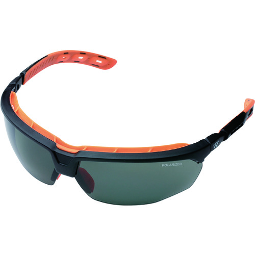仕様 | ●レンズ色:スモーク ●フレーム色:ブラック/オレンジ ●幅(mm):150 ●高さ(mm):44 ●レンズ厚(mm):2.1 ●防傷加工:○ ●UVカット:○ ●ツル調整:○ ●角度調整:○ ●ノーズパッド:○ ●可視光線透過率(%):11 |