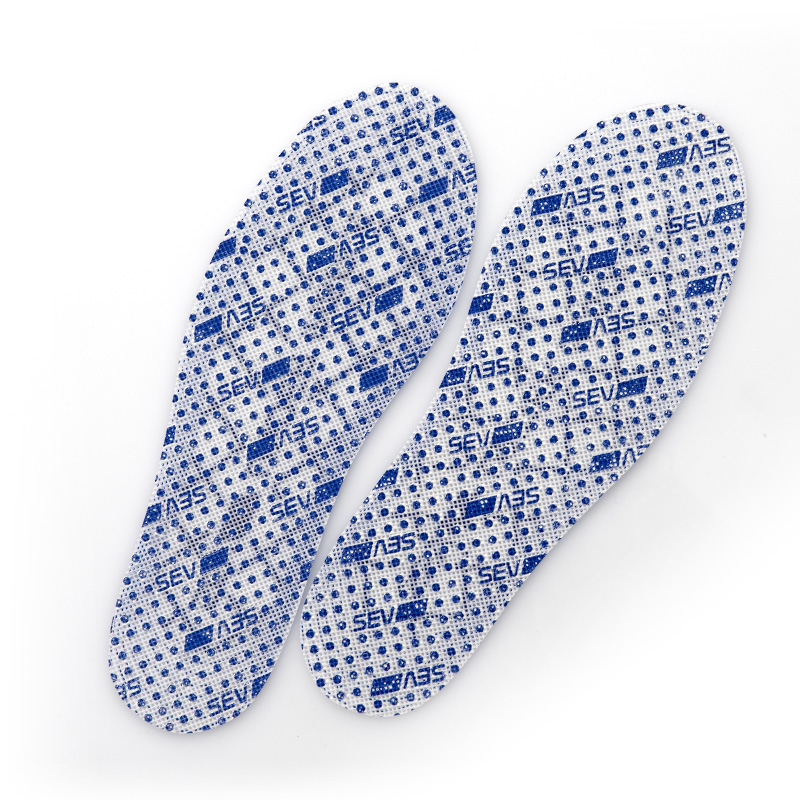「SEVアンダーインソール」は、インソール(中敷)の下に入れて使用する超薄型のSEVインソールです。全面にnanoSEVを使用しており、足裏全面をSEVがサポートします。また、やわらかい素材を使用しているため、違和感なくご利用できます。