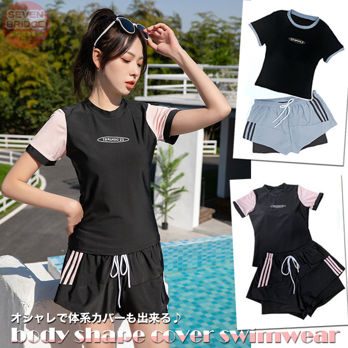 水着 レディース 上下 2点セット スポーティー 体型カバー 胸パッド ワイヤーなし セパレート ビーチ プール 海