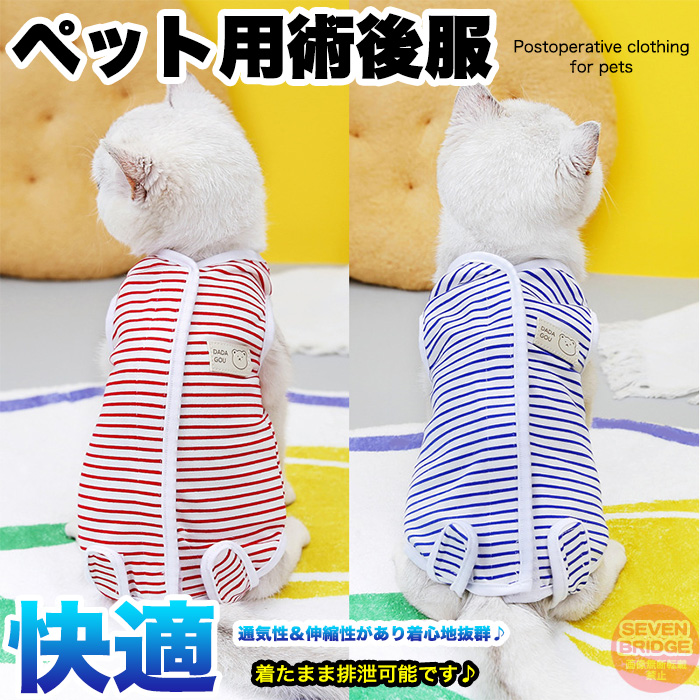 犬 猫 術後服 術後ウェア 伸縮性 ボーダー ワッペン 服 傷 舐めない 傷口保護 ペット服 エリザベスカラー