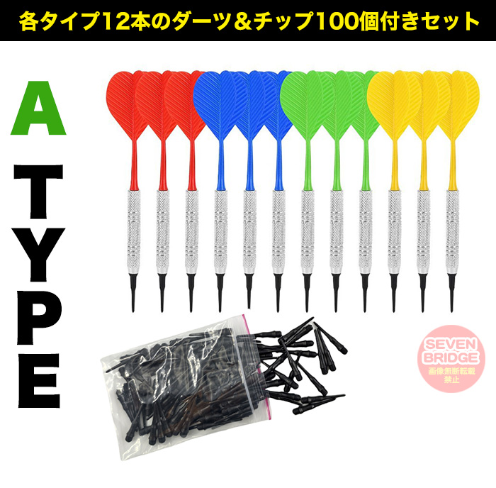 ダーツ 矢 ハウスダーツ 12本セット チップ100個付 シャフト フライト 一体型 ソフトダーツ 初心者 中級者 h0627