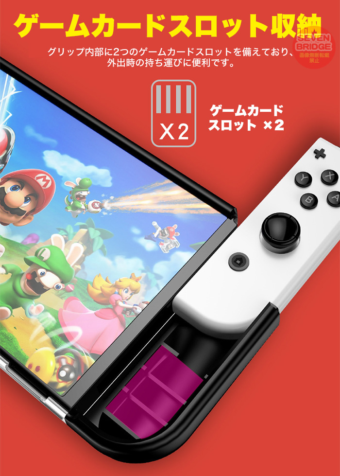 背面の持ち手部分には、手にしっかりフィットする膨らみを持たせたグリップ設計を採用。滑りにくく、握りやすさが格段にアップ!アクションゲームなど、長時間のプレイでも手が疲れにくく快適です。