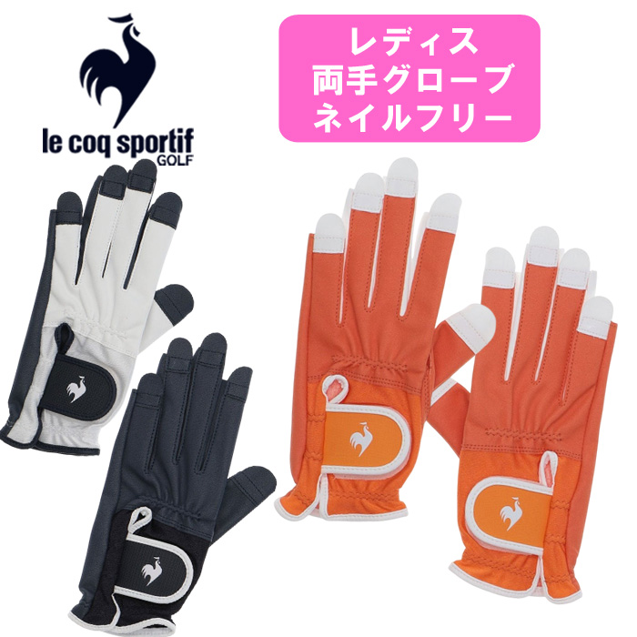 ルコック レディース ゴルフ グローブ 両手用 2025新作 ネイルフリー 手袋 全天候型 UVカット LG5SGV01L 紺 白 オレンジ メール便可