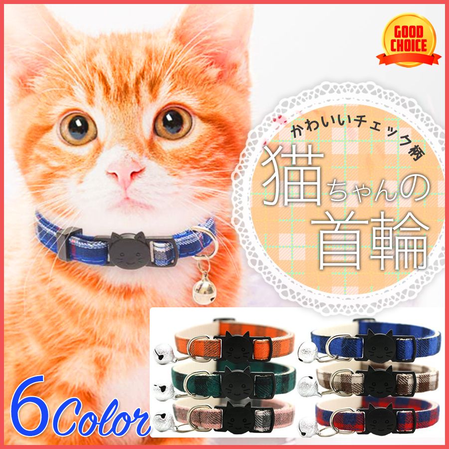 猫 ネコ 犬 首輪 鈴付き チェック柄 6色 セーフティバックル カワイイ 子猫 かわいい 犬
