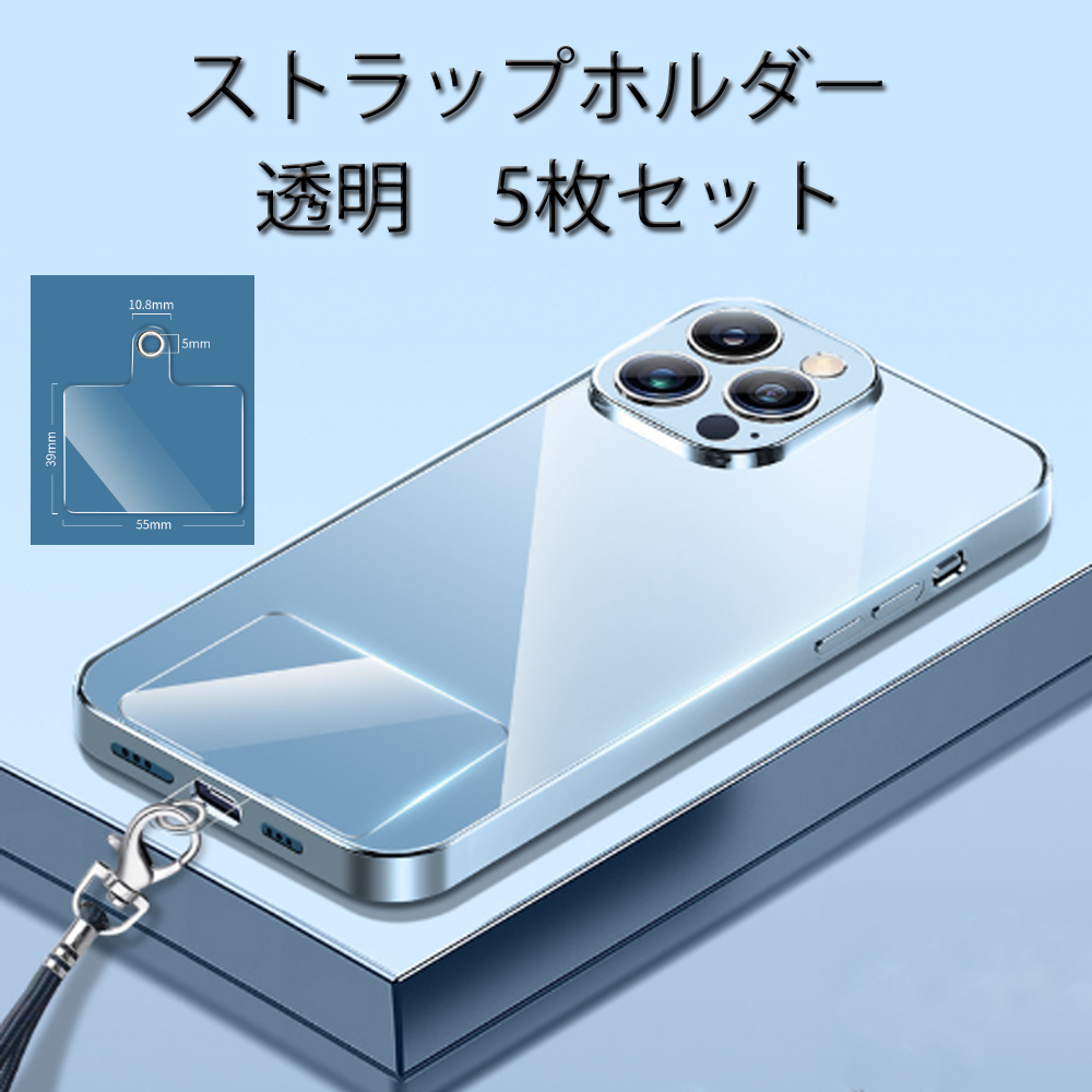 ストラップホルダー クリア スマホ 5枚セット 透明 ネックストラップ用 挟むだけ スマホストラップ スマホアクセサリー ホルダーシート 落下防止透明パッチ