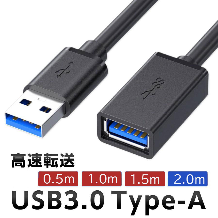 USB 3.0延長ケーブル 2m Type-A オス-メス 高速データ転送5Gbps マウス・キーボード・USBハブ対応 タイプA 延長コード ブラック オスメス