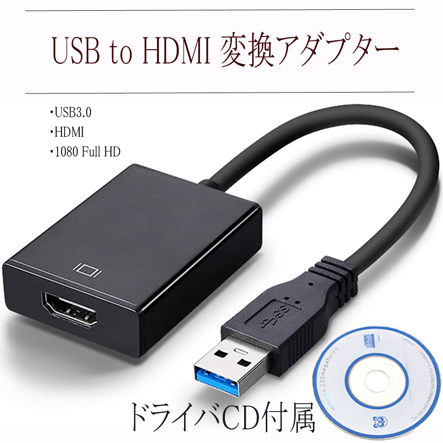 USB HDMI 変換アダプタ ドライバCD付属 USB 3.0 to HDMI 変換 ケーブル 5Gbps高速伝送