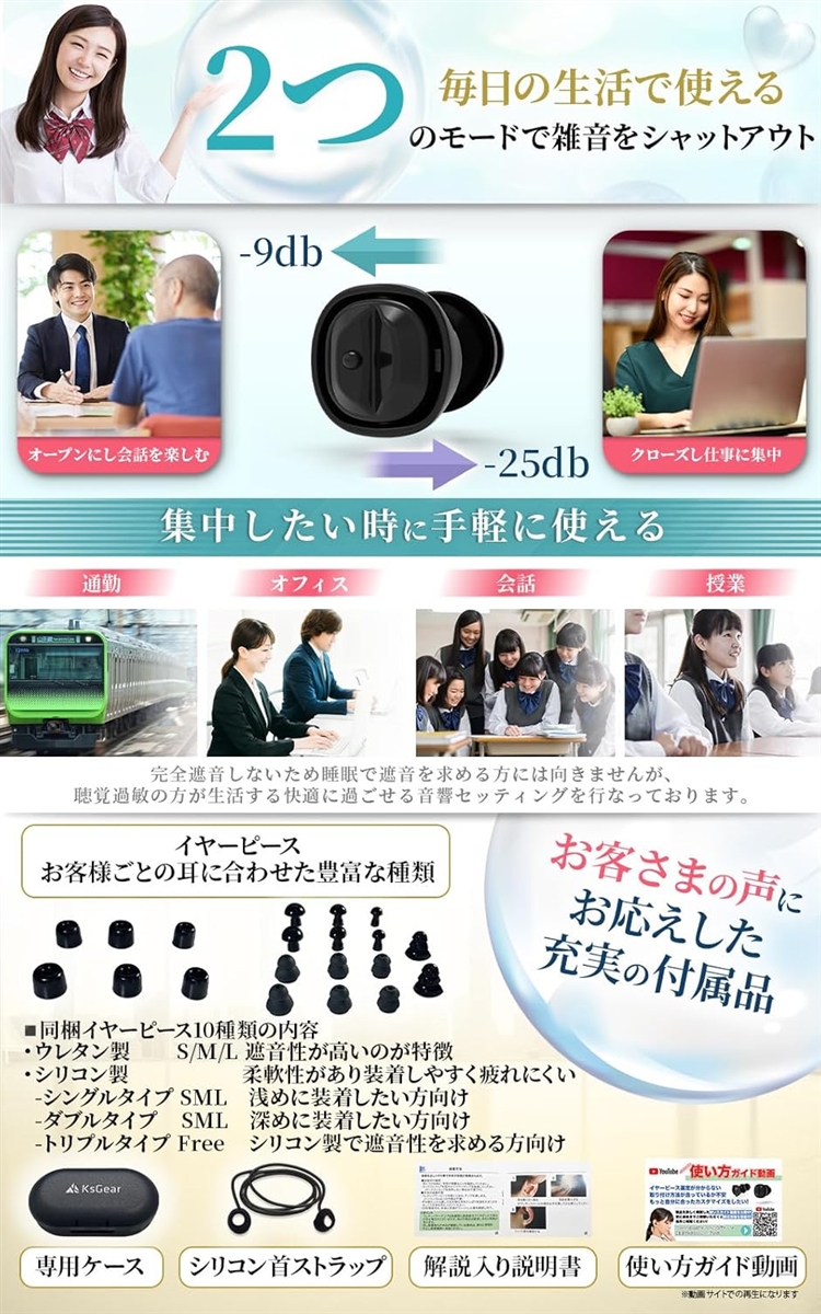 いままでの耳栓で閉塞感や籠もったような感覚が苦手な方でもご使用頂く価値がございます。