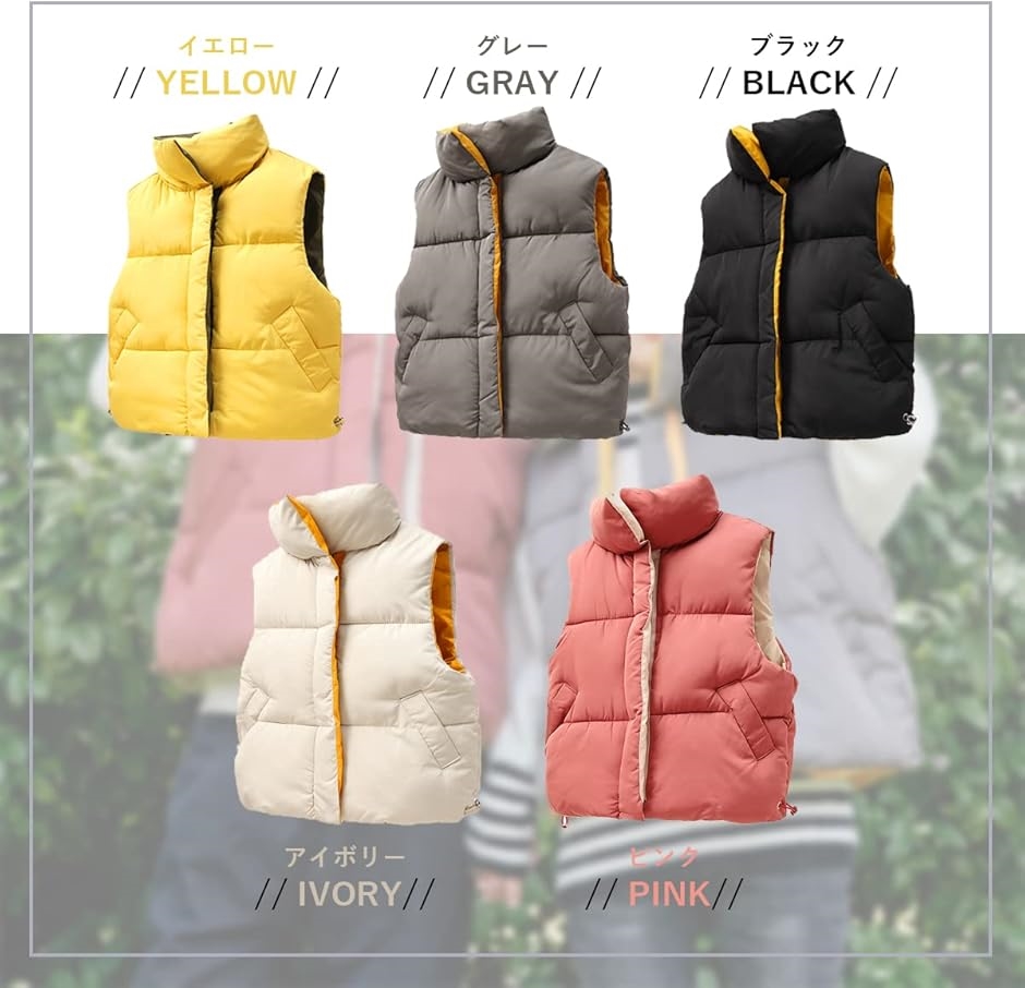 大人っぽくベーシックなカラー使いができる中綿ベストです。