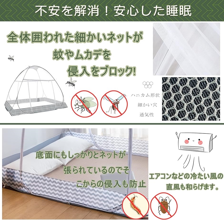 | 商品名 | 蚊帳 かや テント式 ワンタッチ 2ドアタイプ 底生地付き 密度が高い 持ち運べる 収納便利 収納袋付 野外キャンプ 旅行 アウトドア 150x200x145 |