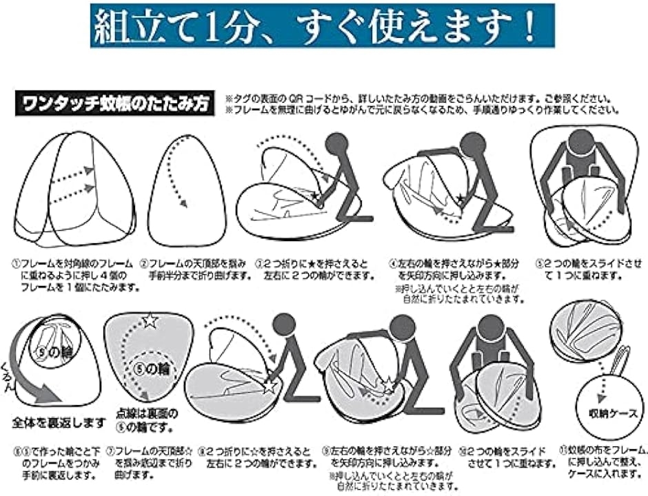 人によって、折り畳み方のわからない方は「蚊帳の折りたたみ」を検束してYOUTUBEでビデオをご参考になってください。