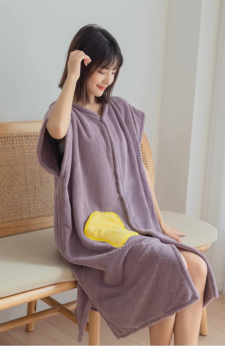 ・「フード付き」 濡れた髪もそのまままとめてフードに入れて押さえるだけでしっかり吸水してくれます。