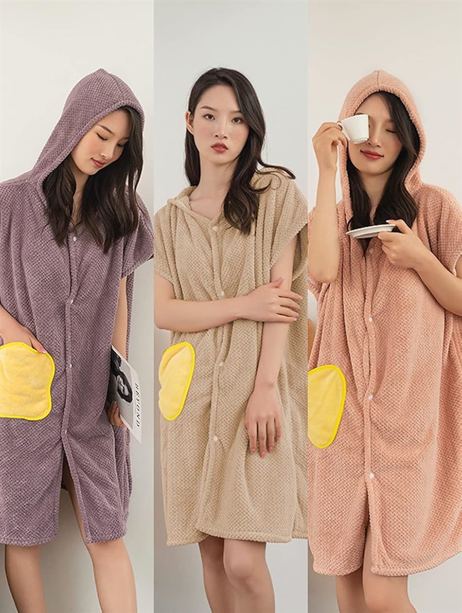 お風呂から出たらそのままパッと羽織れるふわふわバスローブです。