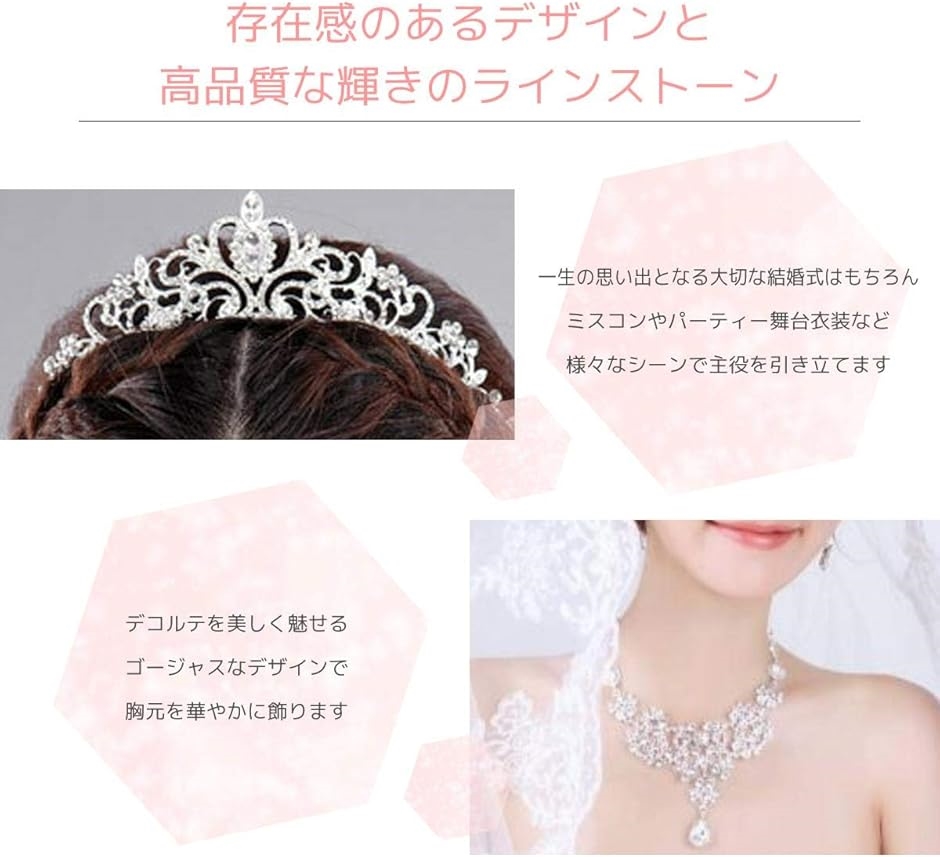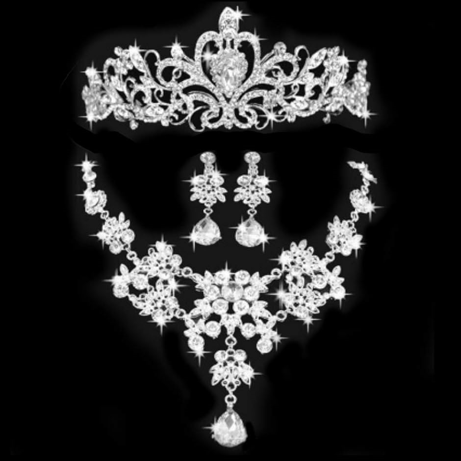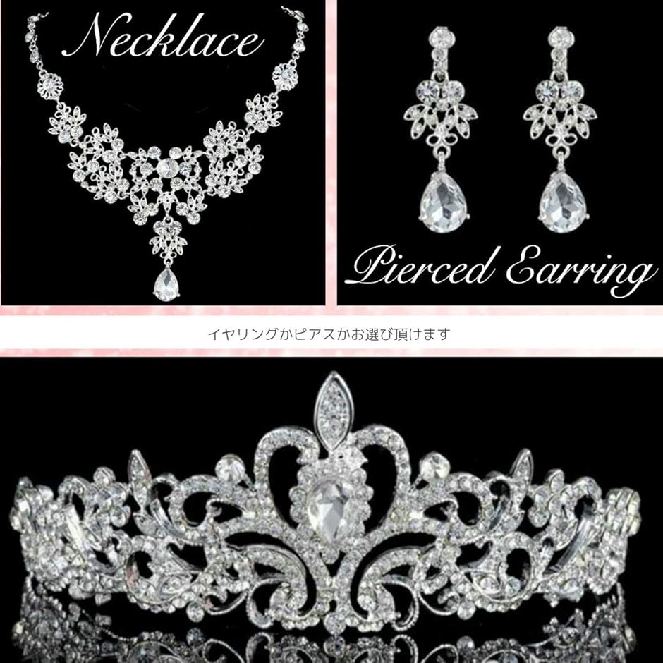| 商品名 | ティアラ ネックレス ピアス 3点セット ブライダル ジュエリー ミスコン 学祭 発表会 等 |