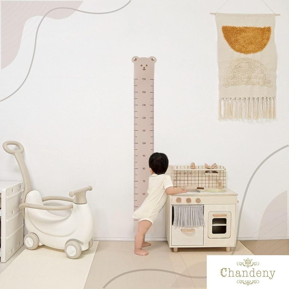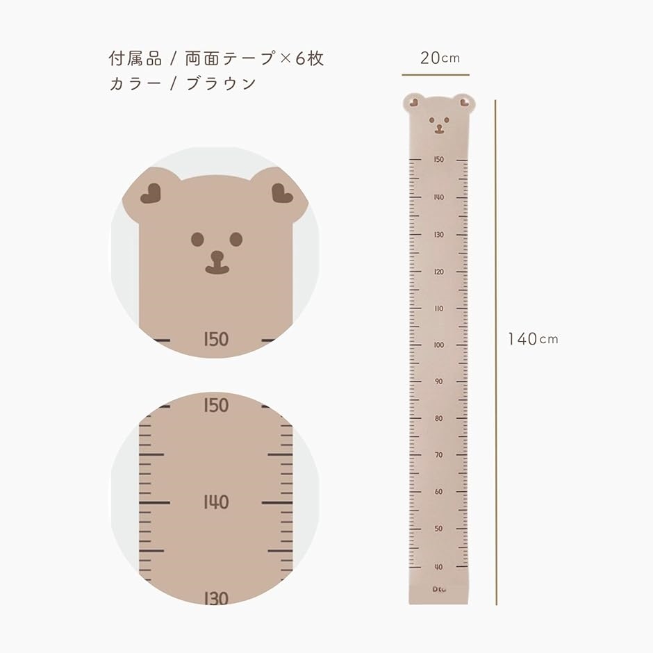 「商品内容」: 赤ちゃん用身長測定ウォールステッカー「カラー」: ライトブラウン(クマ)「サイズ」: 20x140cm「素材」: キャンバス生地「付属品」:両面テープx6枚