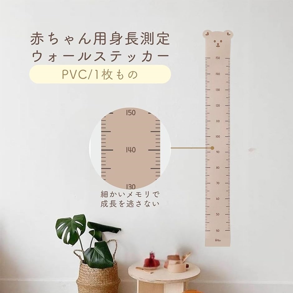 「キレイで実用的。」赤ちゃんの身長測定に便利なウォールステッカーです。さっと設置できる手軽な1枚ものの壁貼りタイプです。