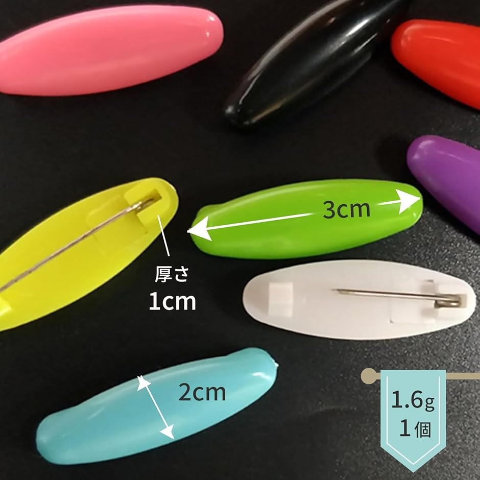 「色々お使い頂けるピン止め」「商品内容」おむつピン止め「カラー」レッド パープル ブルー グリーン イエロー ピンク ブラック ホワイト「サイズ」3.5x2x1cm「重さ」1.6g「素材」ABS樹脂+ステンレス針