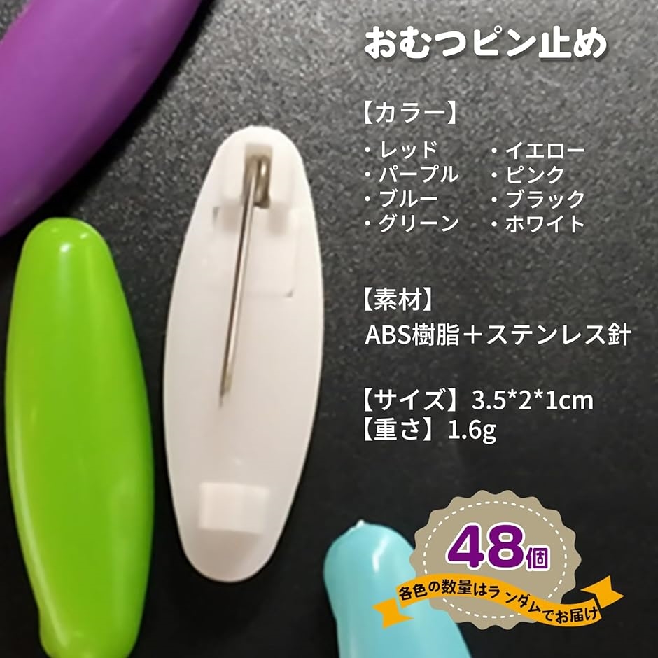 | 商品名 | オムツ ピン留め ズレ防止 赤ちゃん ベビー用品 安全ピン 裁縫 縫い物 スカーフ クリップ 8色 48個 |