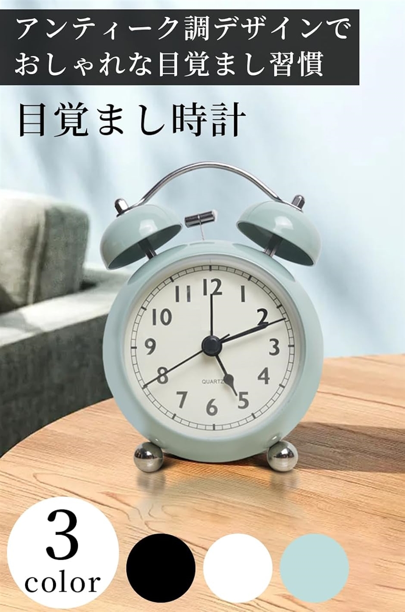 「レトロなベル式のアナログ目覚まし時計」クラシカルなデザインと大音量ベルで、寝坊しがちな朝も確実にサポート。