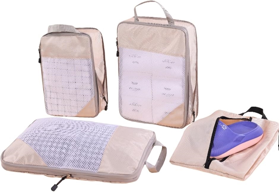 | 商品名 | 旅行用圧縮袋 トラベル ポーチ 4点セット ベージュ メッシュ 圧縮 パッキングポーチ 衣類圧縮袋 4点セット ベージュ |