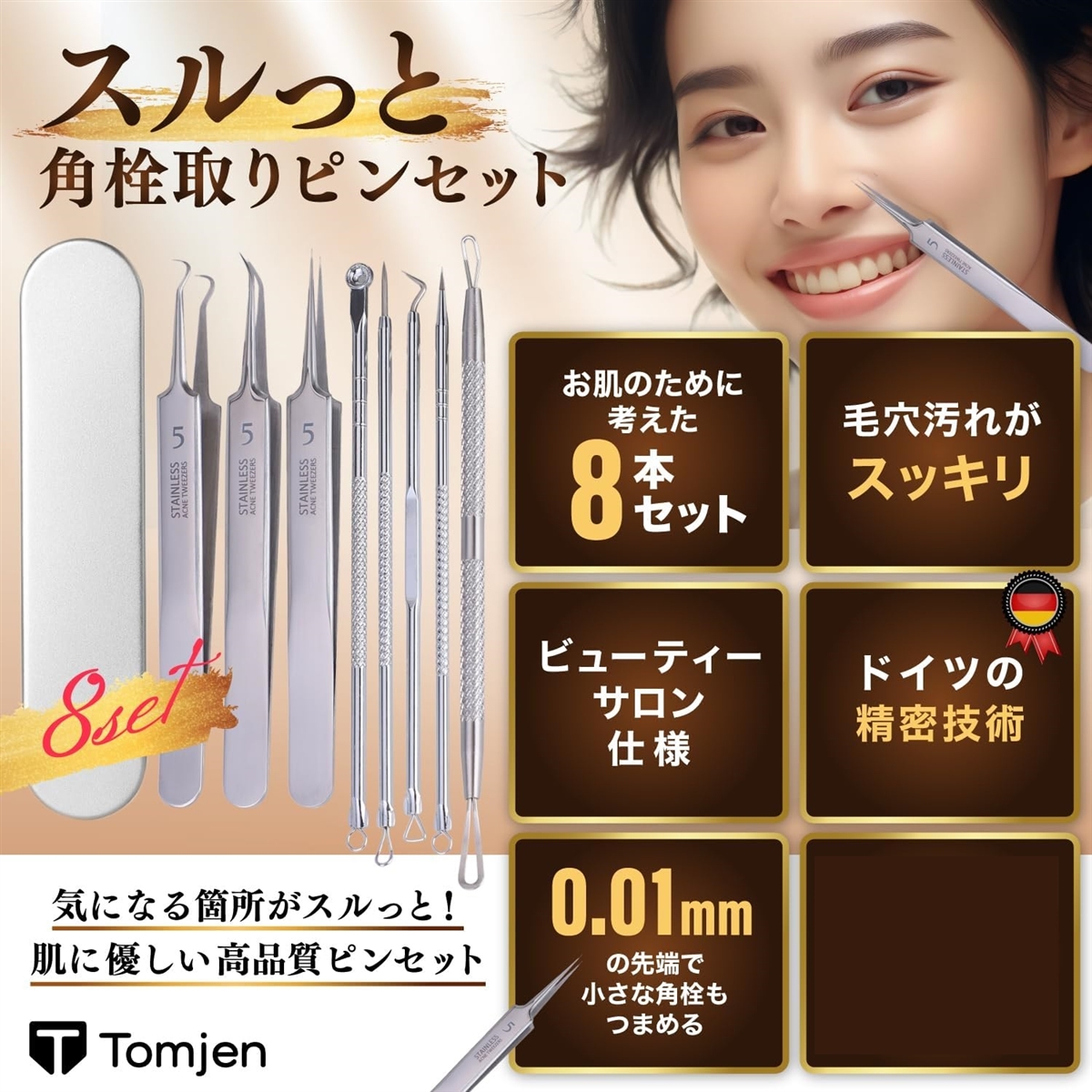 高い品質とこだわりを持つ、ドイツの製造技術を採用したビューティサロン仕様の角栓ピンセットです。