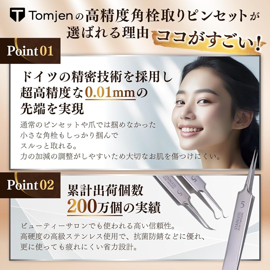 先端を0.01mmにすることで肌への痛みを最大限まで軽減した肌に優しい角栓ピンセット。
