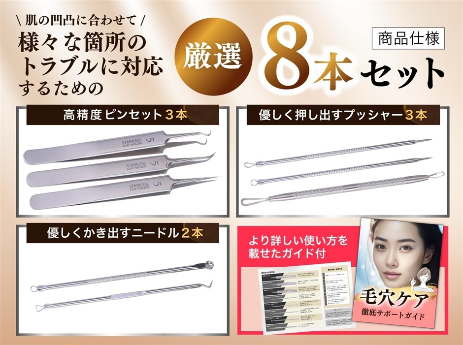 厳選された8本のツールであなたの肌の悩みをケアします。