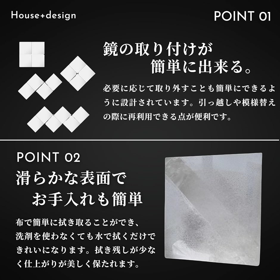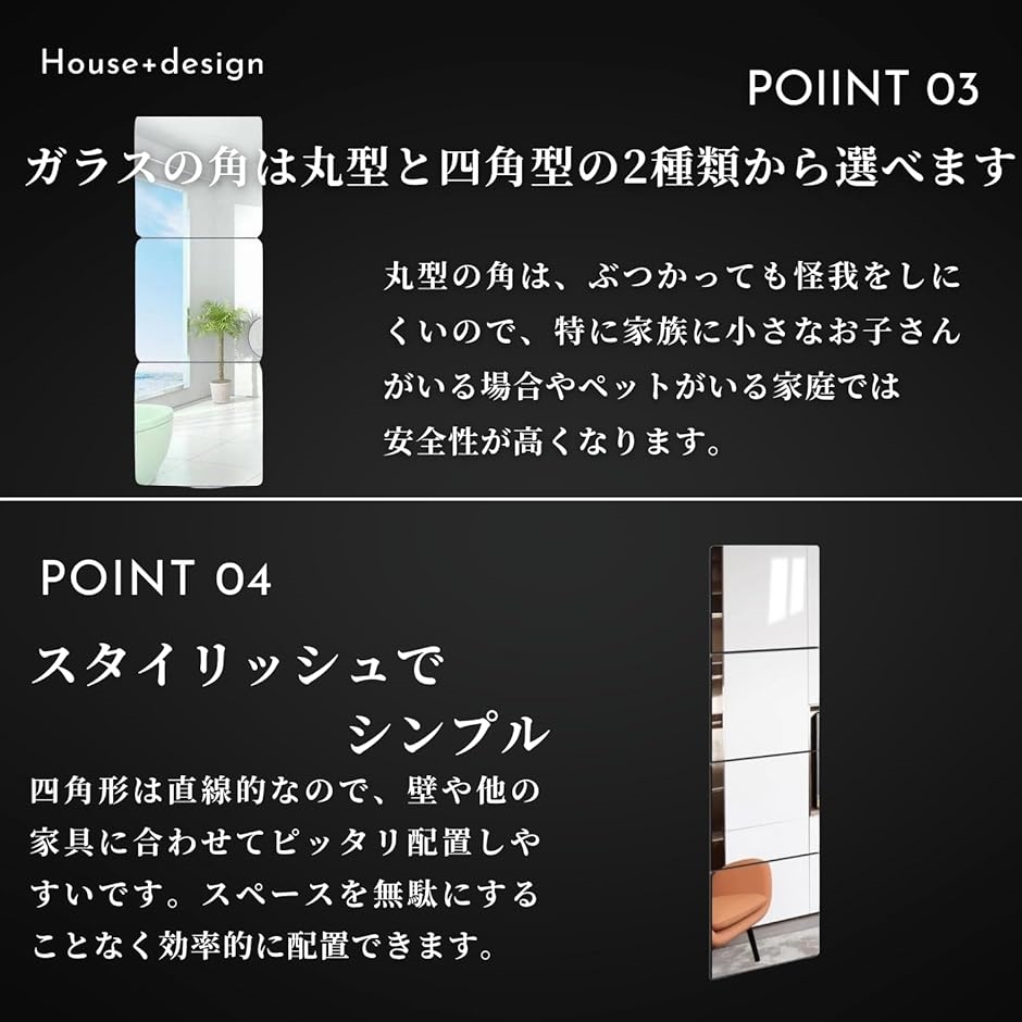 「スペース問題を解決。」 「部屋が狭くて全身鏡を置く場所がない…」そんなお悩みを解決するために生まれたのが、House+designの「どこでも貼れる割れない鏡」。