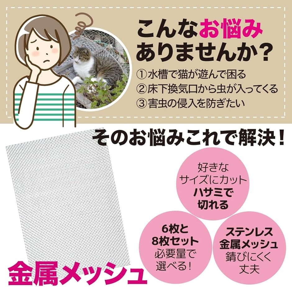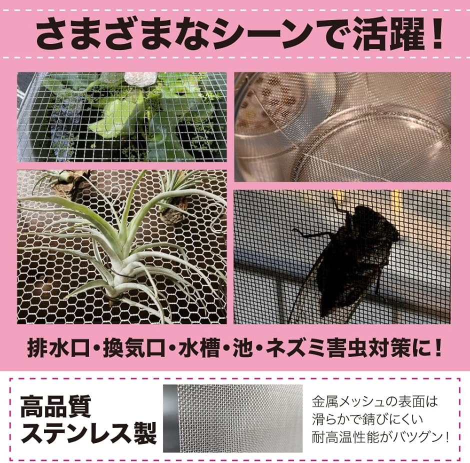 | 商品名 | 金属メッシュ 金網 金属メッシュ ステンレス製 排水溝 防虫 ネズミ 害虫 対策 園芸 A4サイズ 30x21cm |