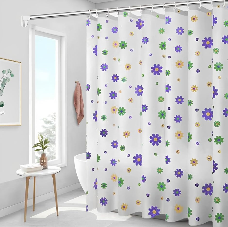 | 商品名 | シャワーカーテン バスカーテン カラフル 防水 厚手 かわいい おしゃれ 間仕切り 花 パープル |