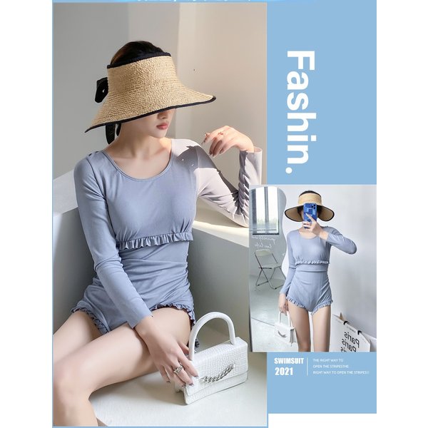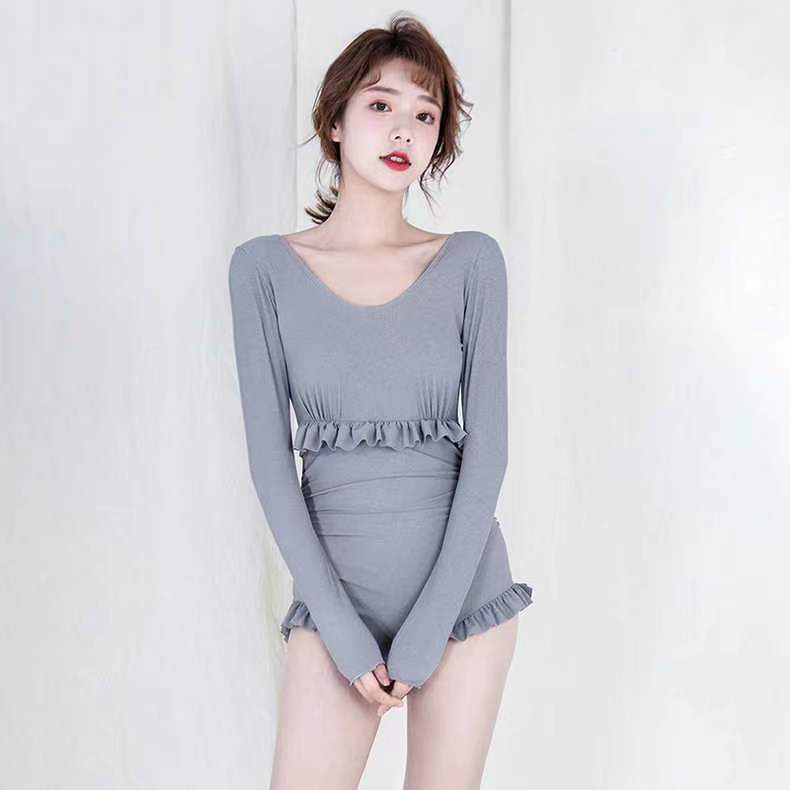水着 レディース フリル 背中魅せ 可愛い 無地 ベーシック 長袖 パッドあり オシャレ リゾート 旅行 女性 夏