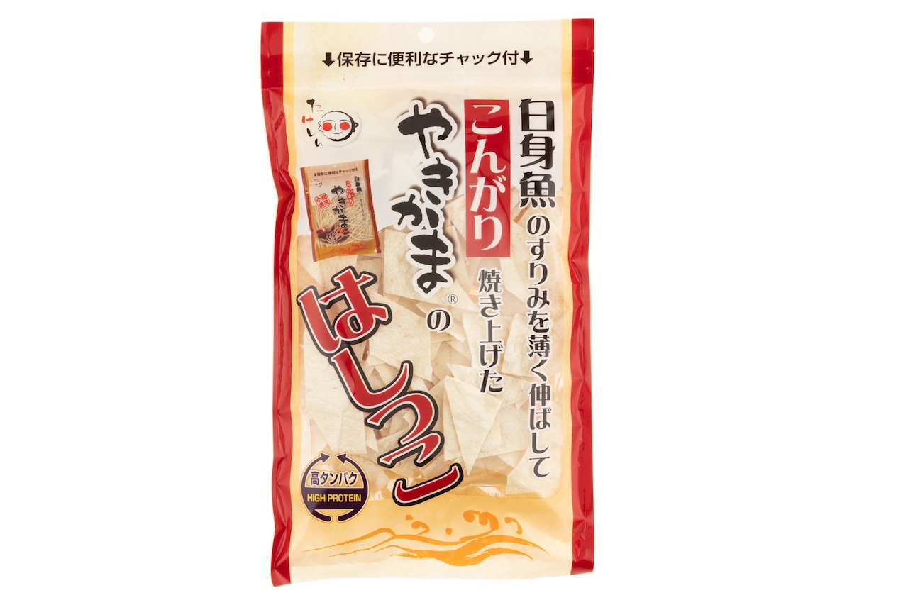 「白身魚のすりみを薄く伸ばしてこんがり焼き上げたやきかまのはしっこ」 本当はこの商品名にしたかったのですが、長すぎるので「やきかまのはしっこ」になりました。 ご愛顧をいただいている、たけしんの「こんがりやきかま」。 やきかまの製造時にどうしても裁断できない"はしっこ"などを集めました。 本家に勝るとも劣らない売れ行きで、噛み応え食べ応え抜群です。 また、はしっこは料理にも使える優れモノ。 うどんやお味噌汁に入れていただくと、出汁を吸ってモチモチ食感に。 手軽に魚介の旨味も加わり、ご家庭のお料理をワンランクアップさせます。 ぜひお試しください。 1ケース(100g 10袋入り) もっと詳しく 「やきかまのはしっこ」は、人気の「こんがりやきかま」を独自のアレンジでお届けする商品です。こちらは、こんがりやきかまを製造する際に発生する切れ端の部分をベースにし、一袋にたっぷりと詰めました。 この商品は、そんな勿体ないという思いから「はしっこ」と名付けられました。一口サイズのカットにより、手軽に食べることができるため、おつまみやパーティーの一品として最適です。