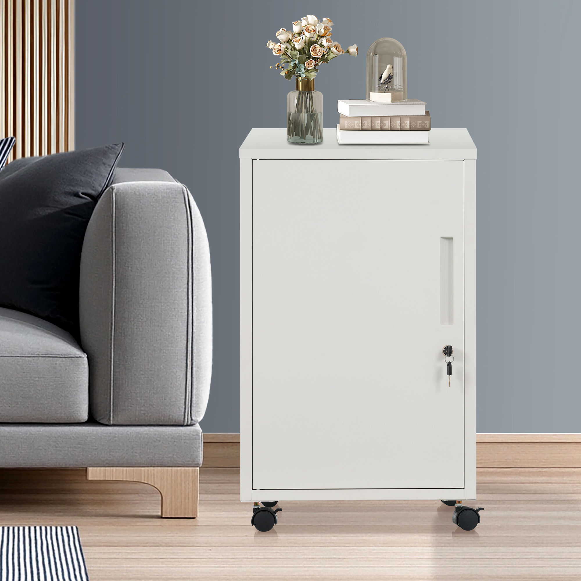 スクワゴン サイドワゴン オフィスワゴン キャスター付き キャビネット 書庫 スチール製 机下収納 袖机 可動棚 スリム