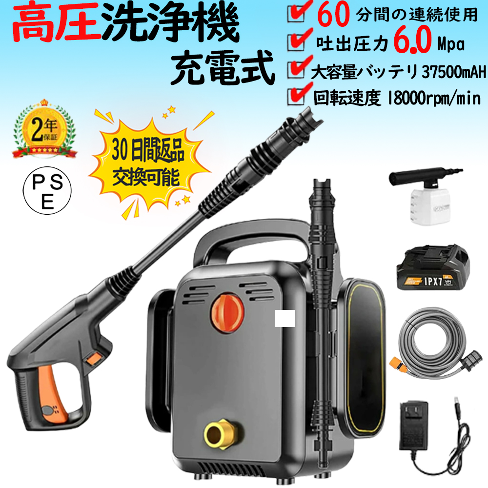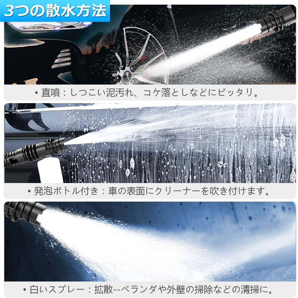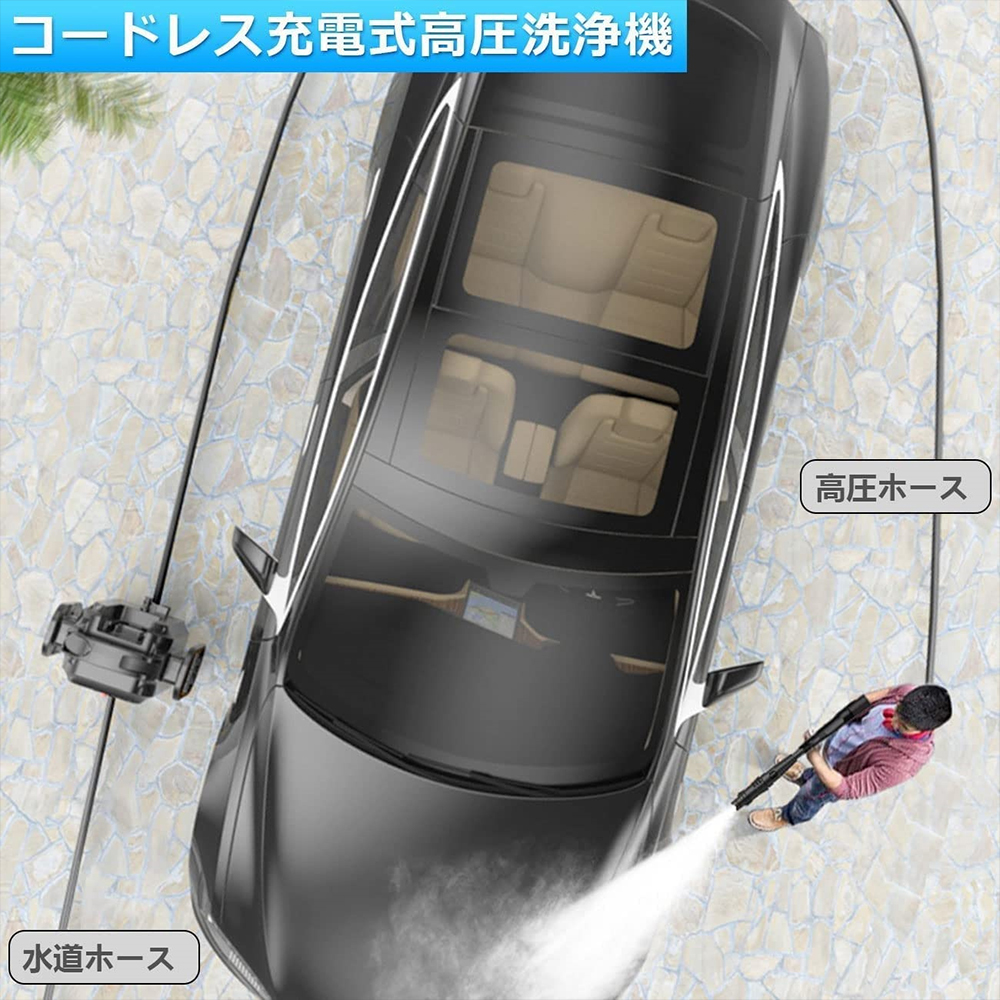 高圧洗浄機 コードレス 充電式 最大水圧 6.0MPa 多機能ノズル自吸式電源コードは 洗車 強力噴射 洗浄 電動工具 大掃除 掃除 自吸タイプ 家庭用 低騒音 外壁掃除