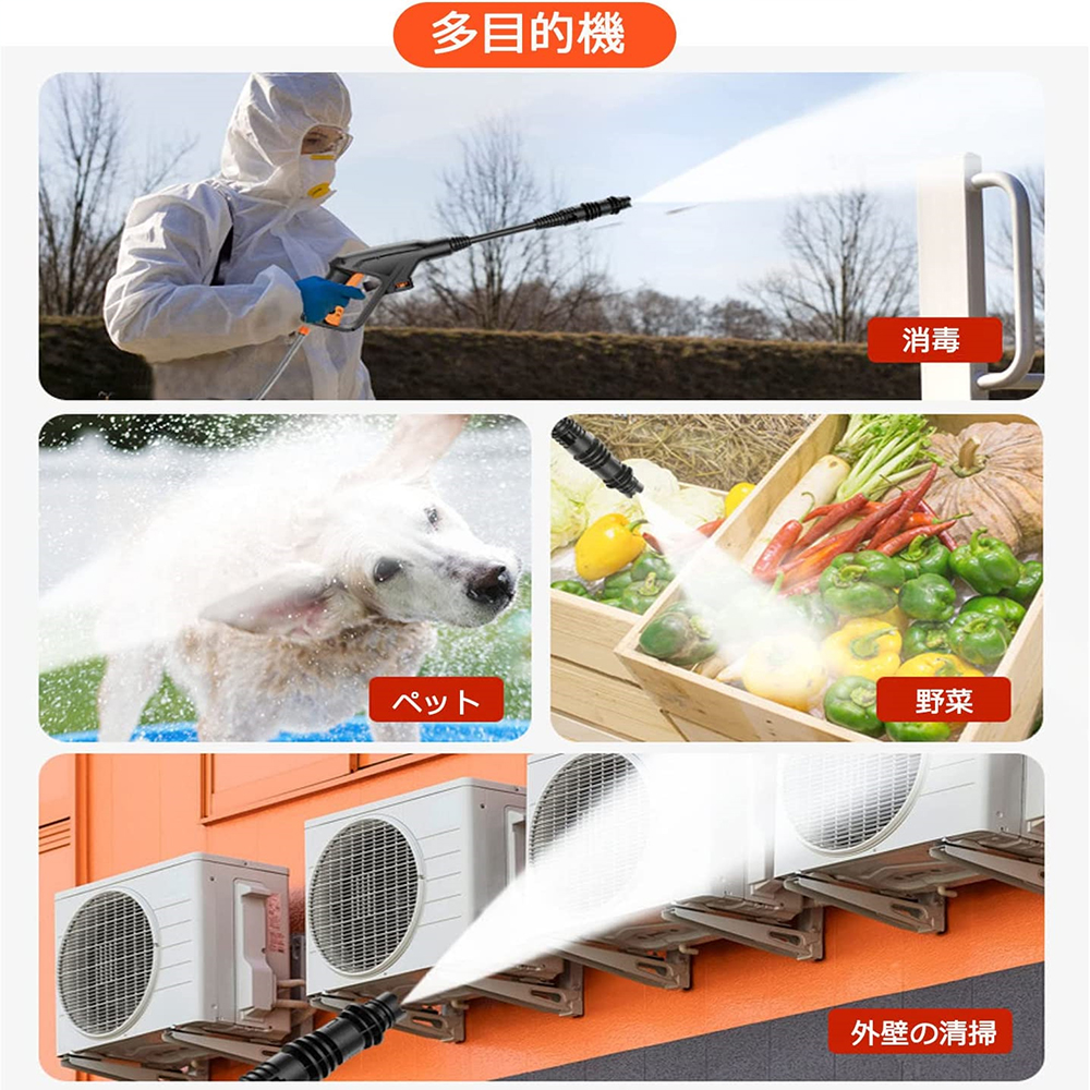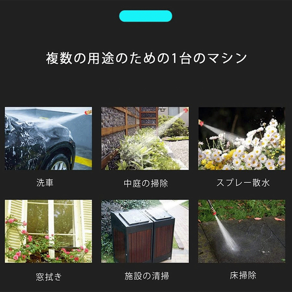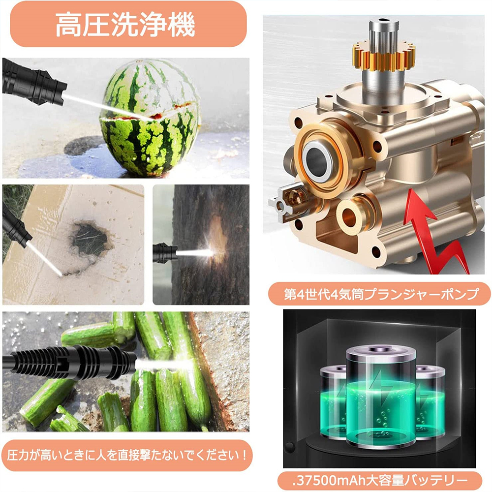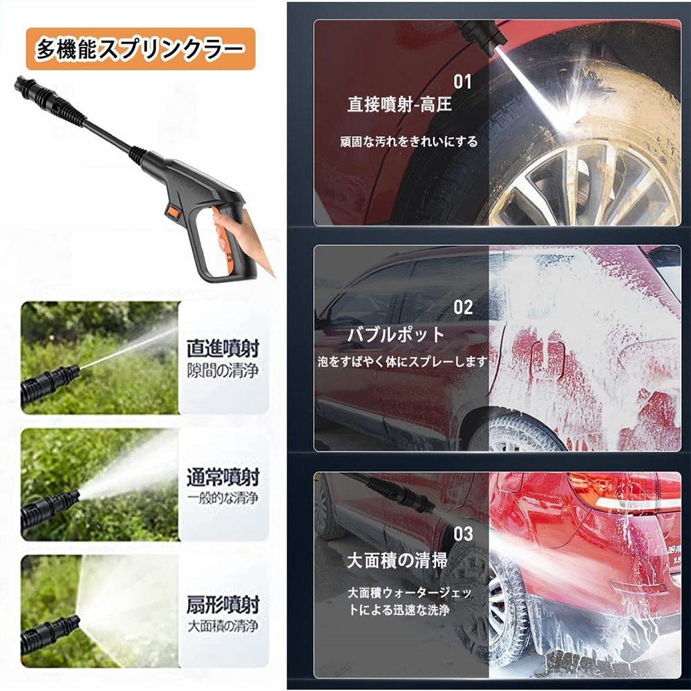 高圧洗浄機 コードレス 充電式 最大水圧 6.0MPa 多機能ノズル自吸式電源コードは 洗車 強力噴射 洗浄 電動工具 大掃除 掃除 自吸タイプ 家庭用 低騒音 外壁掃除
