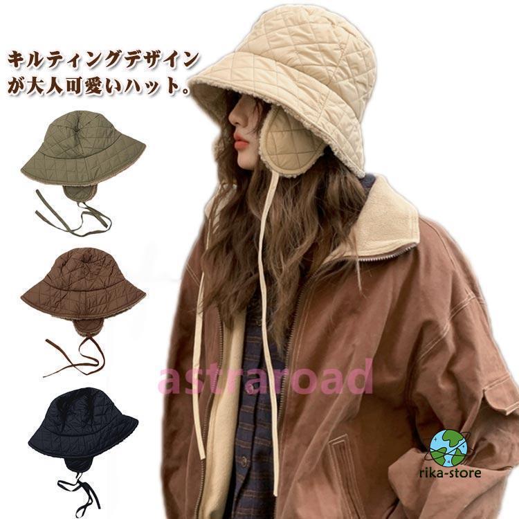 帽子 キルティング バケットハット イヤーマフ ハット レディース 秋冬 帽子 キルティング ボアバイザー ハート つば付き 裏起毛 あった
