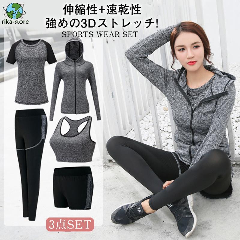 スポーツウェア レディース トレーニングウェアセット 上下3点セット セット ヨガウェア 上下セット ランニングウェア ウォーキング