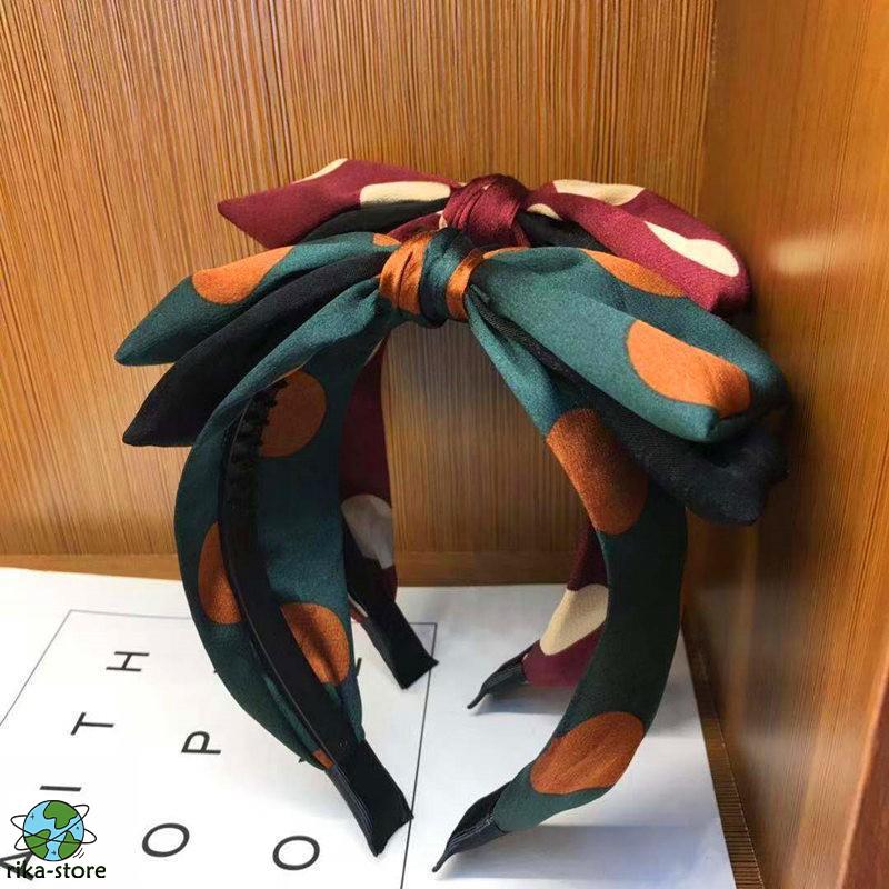 カチューシャ 大きめ リボン ドット 可愛い 全6色展開 レディース ドットデザインヘアアクセサリー オシャレデザインヘアアクセサリー