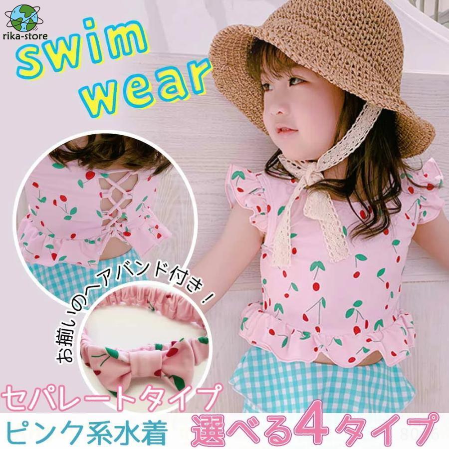 【選べる4タイプ】 水着 女の子 セパレート 保育園 幼稚園 プール 海 リゾート 温泉 おしゃれ さくらんぼ ギンガムチェック ピンク ストライプ 花柄 スイムウエ