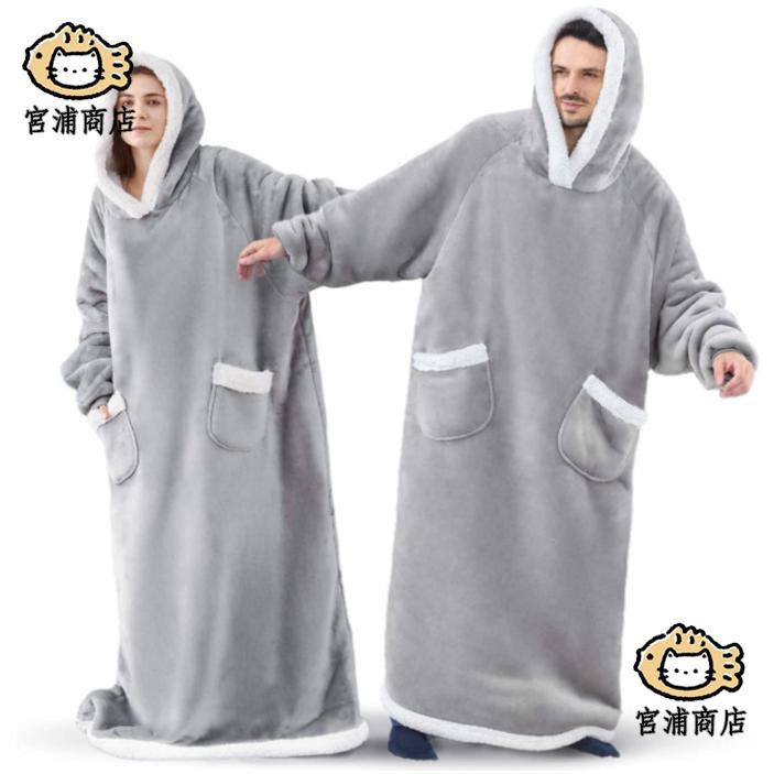 爆買 着る毛布 ルームウェア メンズ レディース ロング 暖かい モコモコ おしゃれ ガウン 秋冬 パジャマ バスローブ ブランケット 部屋着 寝具 あったか 長袖 ジップジップ パーカー フード付き 寒さ対策 ボア