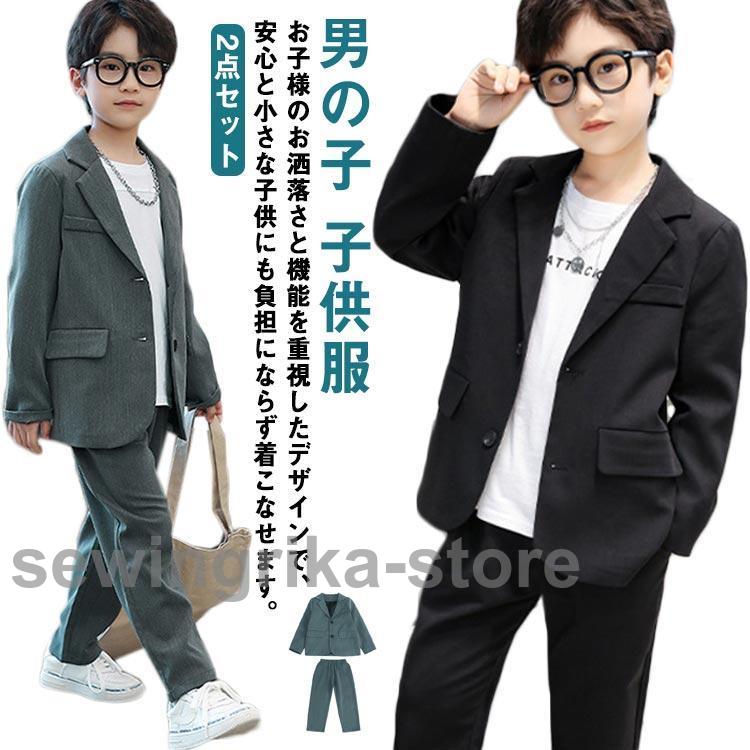 2点セット 子供スーツ 男の子 子供服 キッズスーツ 入学式 結婚式 スーツフォーマル スーツ おしゃれ 子供スーツ ブラック グレー 黒 入園式 卒