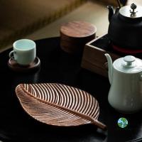 厚さ2cm】葉型 木製 【48*18cm 木 木のお皿 プレート 皿 食器 ウォールナット 和食器 キッチン おしゃれ 天然木 プレート 変形皿 ト