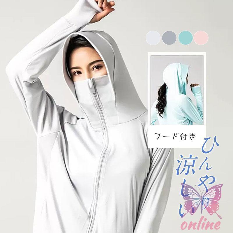 uvカットパーカー レディース 涼しい 冷感 夏 大きいサイズ フード付き 日焼け防止 首 フェイスカバー ネックカバー アームカバー