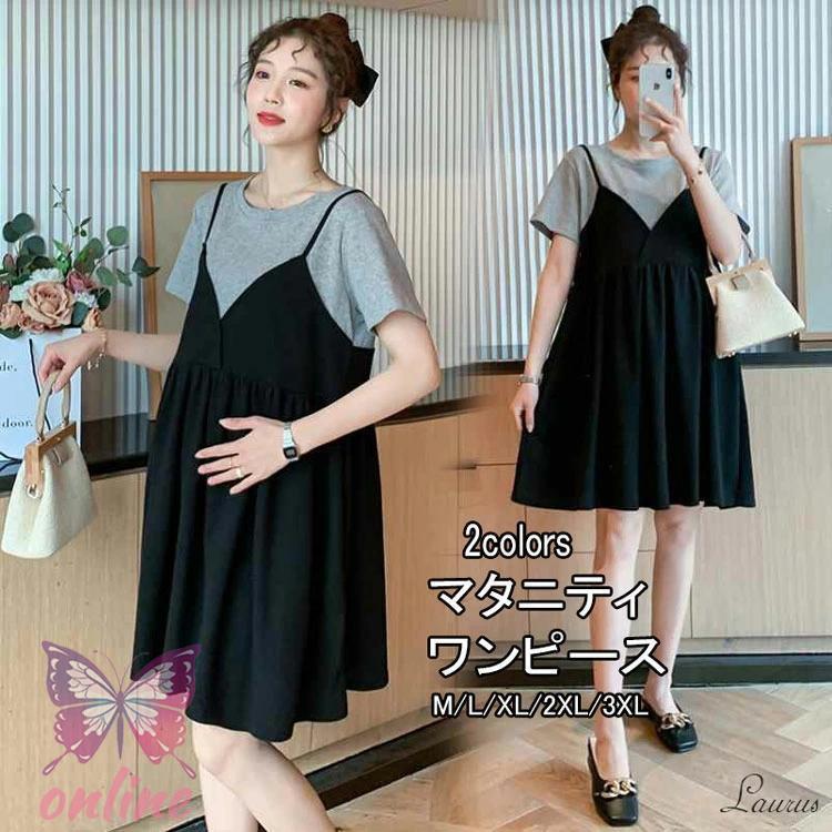 マタニティ ワンピース マタニティ 重ね着風 日常 体型カバー 産前産後対応 産前 産後 妊婦服 マタニティーウェア 夏 春 ママ レディース マタニティワンピ