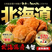 北海道オホーツク産 浜茹で毛蟹 大型570gサイズ×2尾入 合計1,14kg 化粧箱入り 堅ケガニ 毛ガニ かに カニ お祝い お歳暮 お年賀 お歳暮 爆買