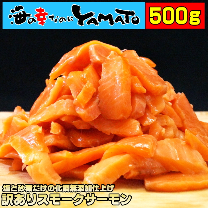 【訳あり】スモークサーモン 500g 塩と砂糖だけの化調無添加仕上げ 切り落とし トラウトサーモン さけ グルメ 燻製 おつまみ