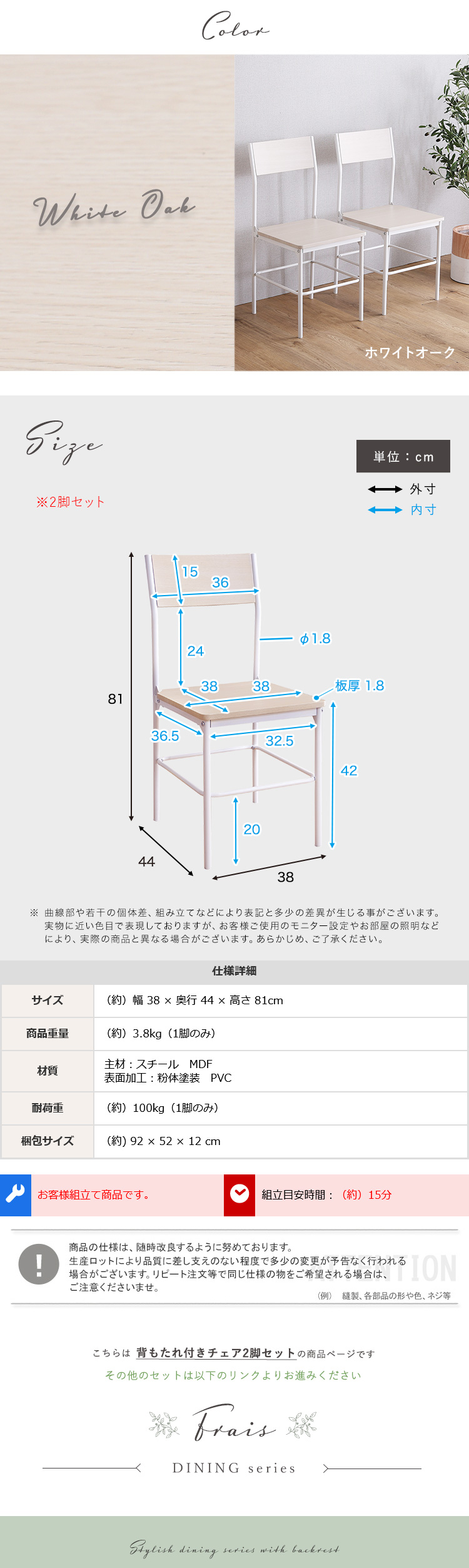 >>【Frais】背もたれ付きチェア2脚セットはこちら